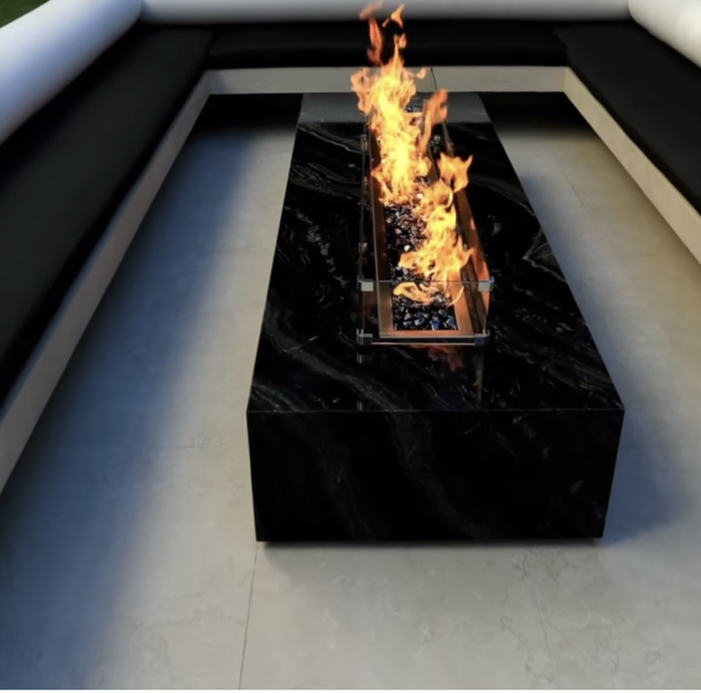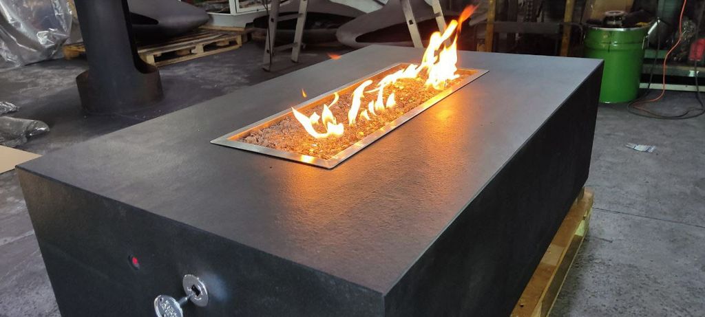 Стол-камин газовый с подсветкой и стеклянными экранами