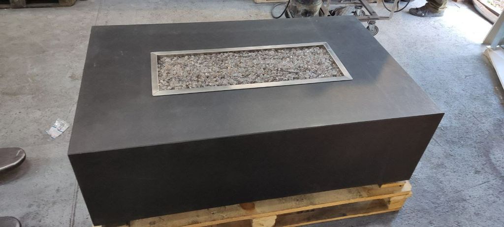 Камин может быть выполнен в любых размерах,с разными вариантами отделки: сталь кортен, гранит, мрамор.