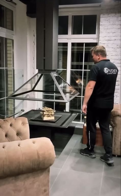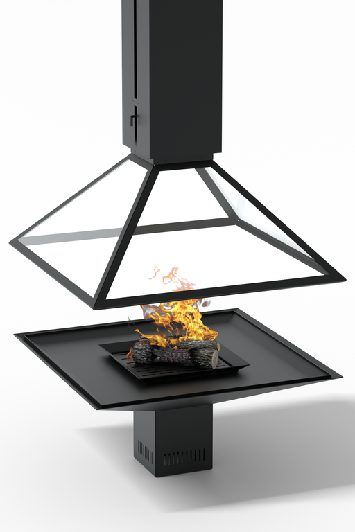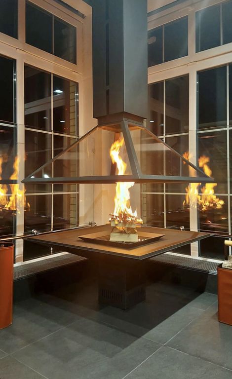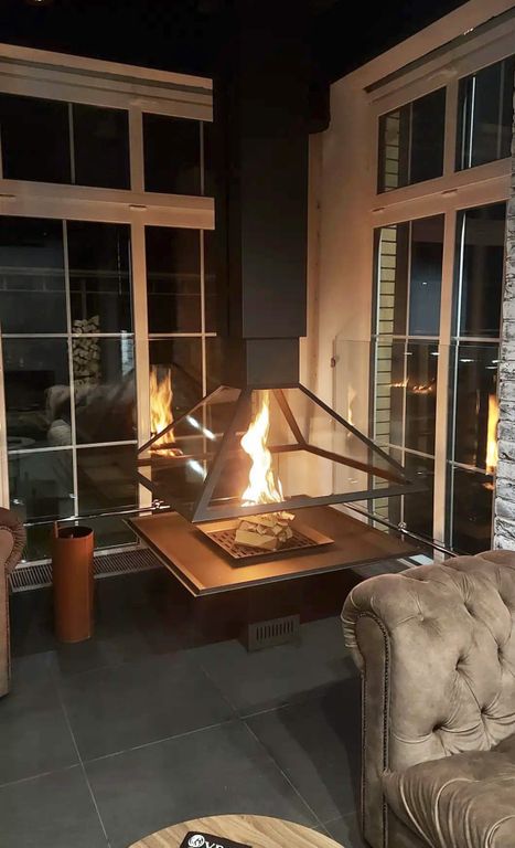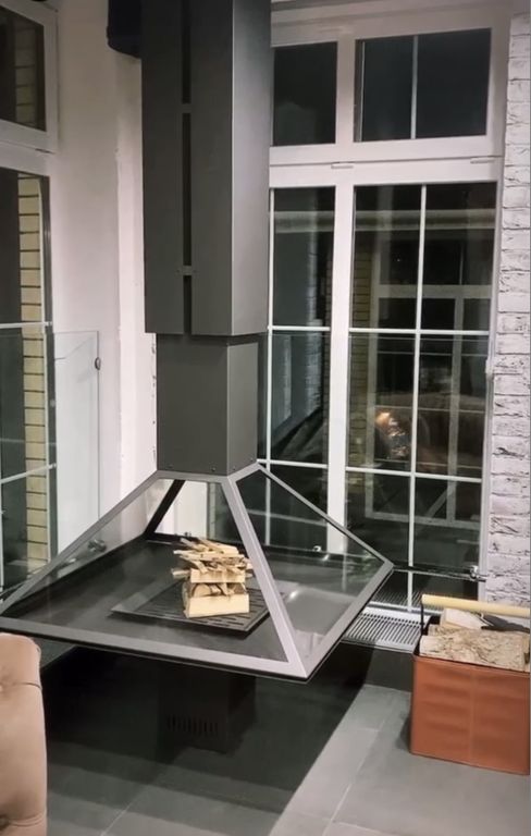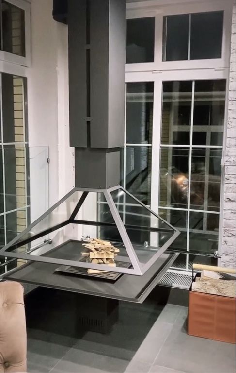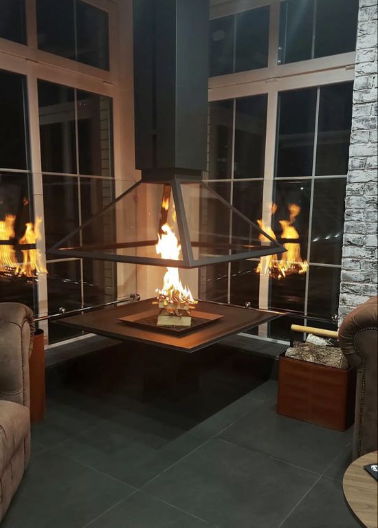 - Центральный камин с электроприводом, поднимающим купол