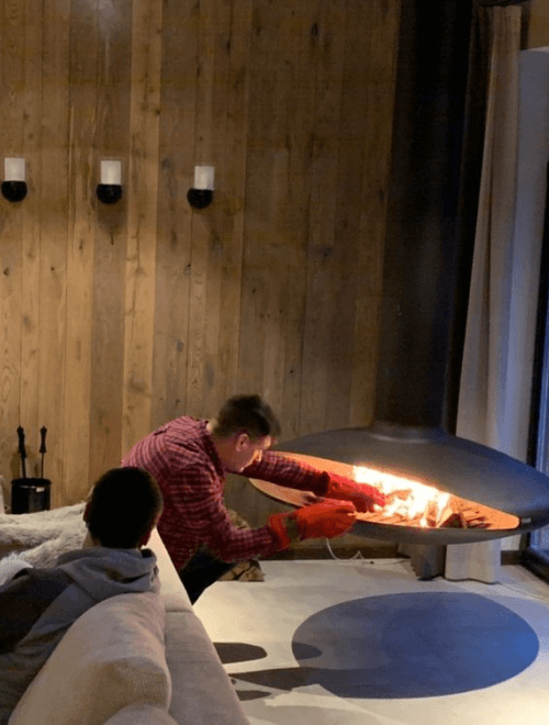 - Подвесной камин с вращающейся топкой